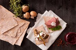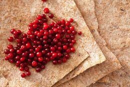 Røros Flatbrød med tyttebær er takkestekt, grovt og sprøtt, og har en tykkelse som gjør det lett å smøre. Det passer perfekt til middagsmat, spekemat, supper og tapas.